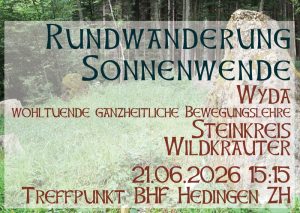 Unterwegs tauchen wir ein in Wyda, der ganzheitlichen Bewegungslehre aus der TEM (Traditionelle Europäische Medizin), sammeln und kosten essbare Wildkräuter.